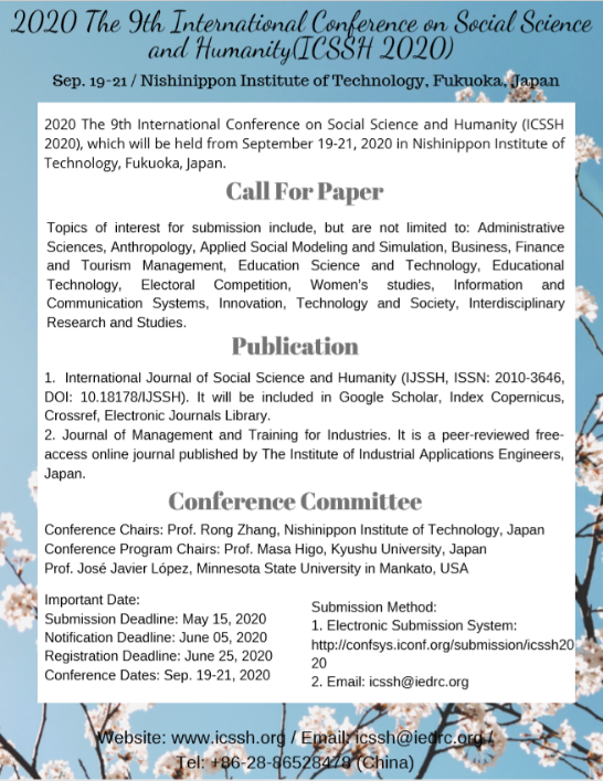 2020 The 9th International Conference on Social Science and Humanity (ICSSH 2020)
